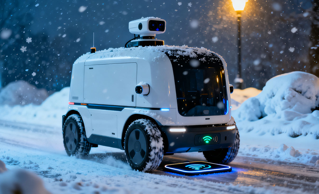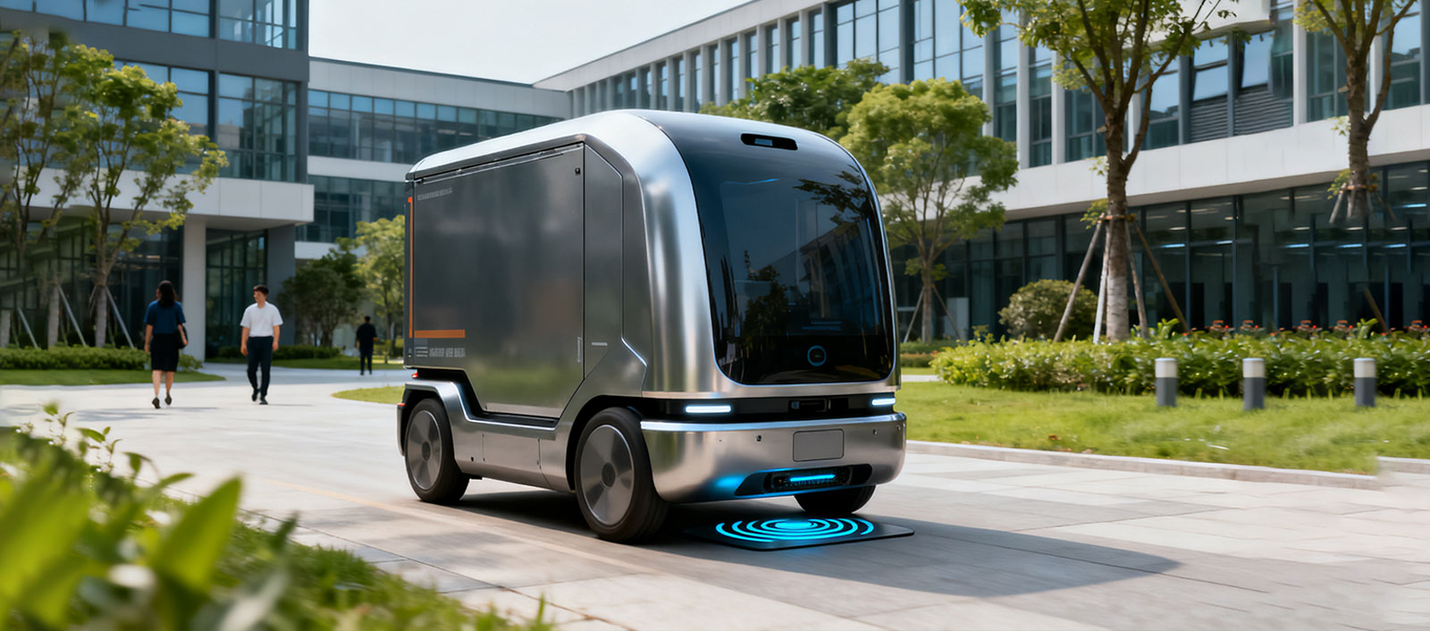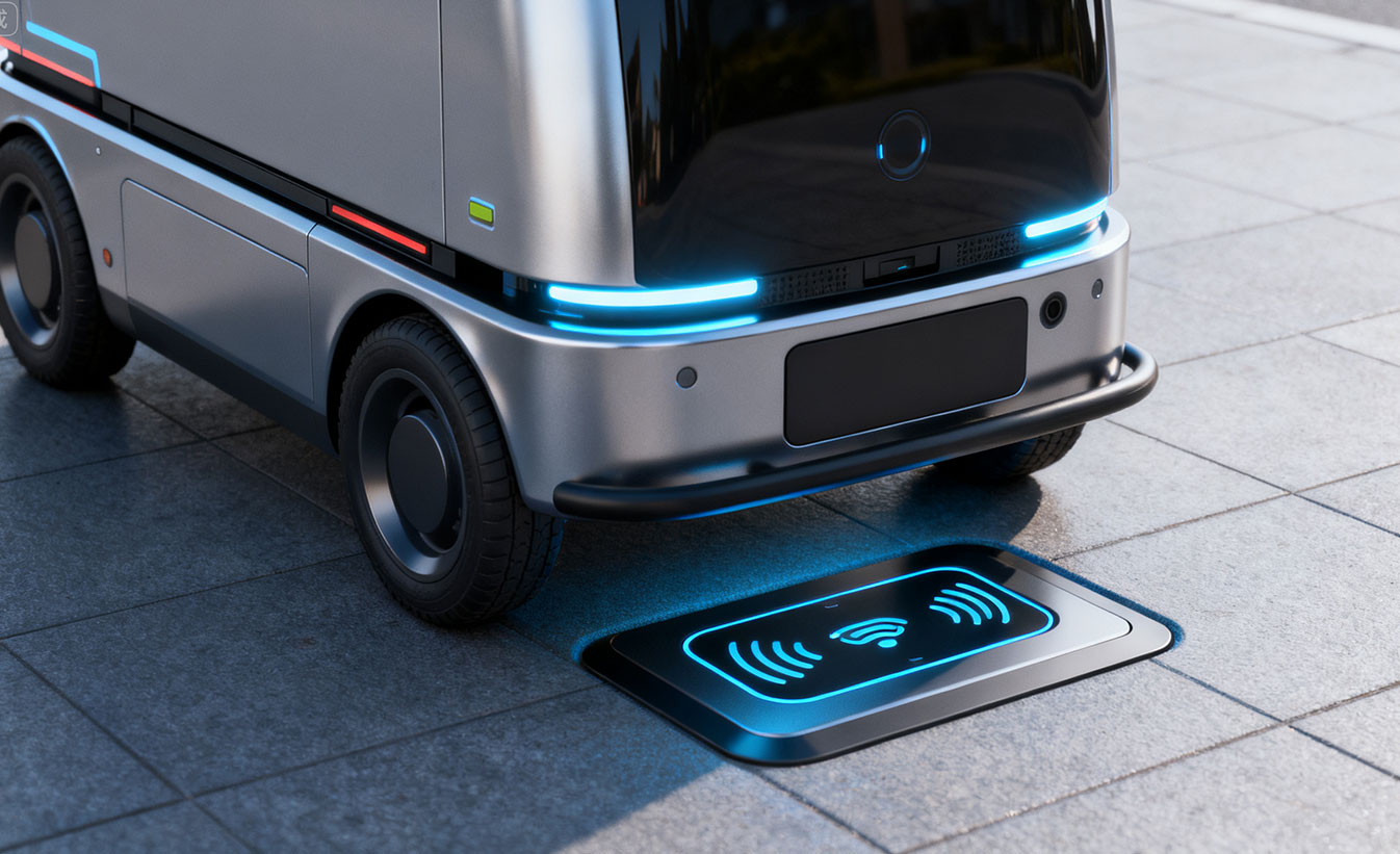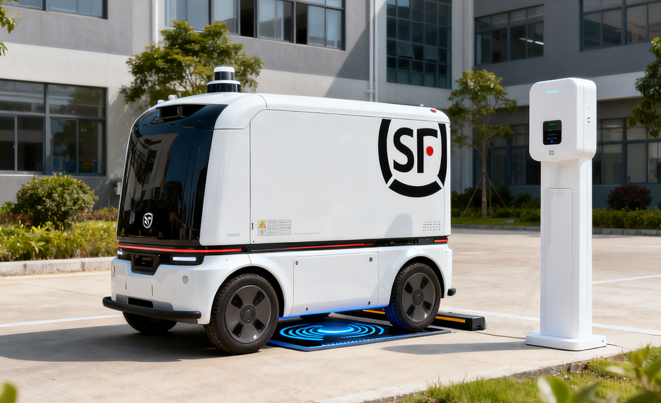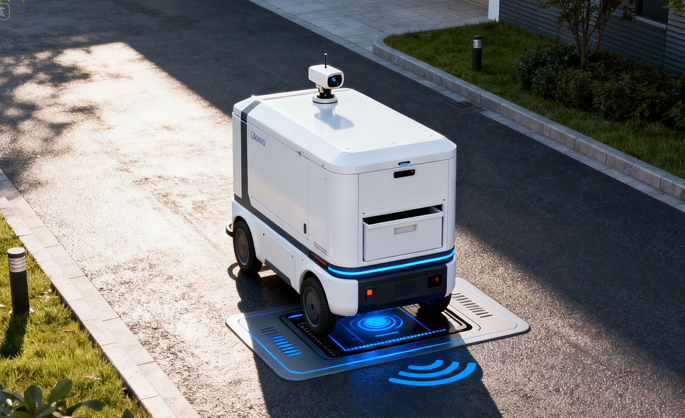 服务于无人配送车在50公里范围内的能源自动化管理,提供高效率、高兼容性、低维护的无线充电基础设施。支持宽松定位对接、多环境嵌入部署,具备IP65/IP67防护与数据集成能力,助力智慧物流系统实现全程无人化、高频次运维。